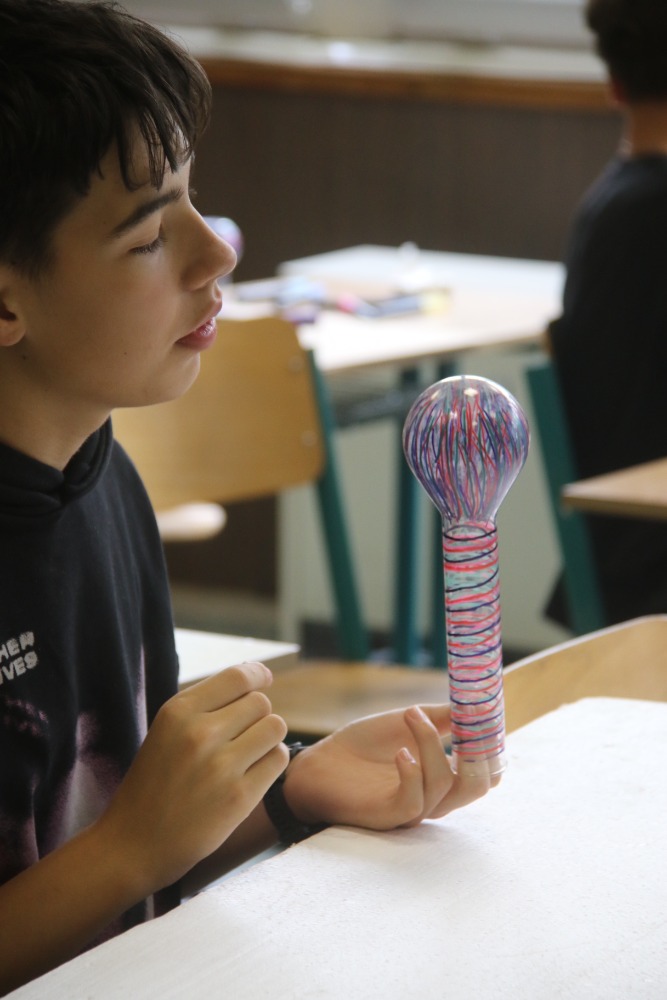 Také je vám líto jen tak věc, která už dosloužila, vyhodit? V hodinách výtvarné výchovy dali studenti kvarty nepotřebným knížkám a vyřazenému chemickému sklu nový život. Z knížek někteří vytvořili úplná umělecká díla a baňky poslouží jako vázičky, či vyzdobí učebnu chemie.