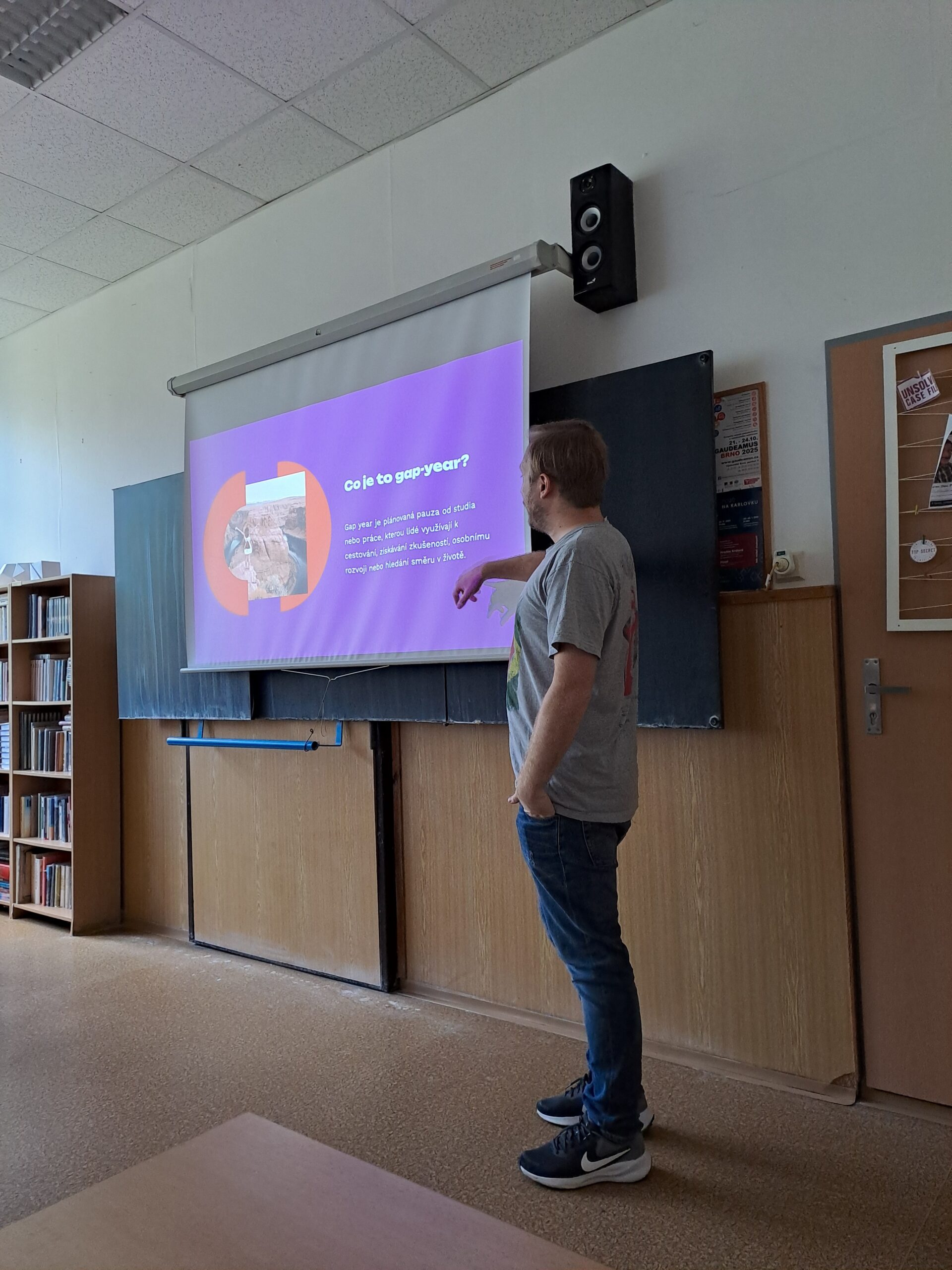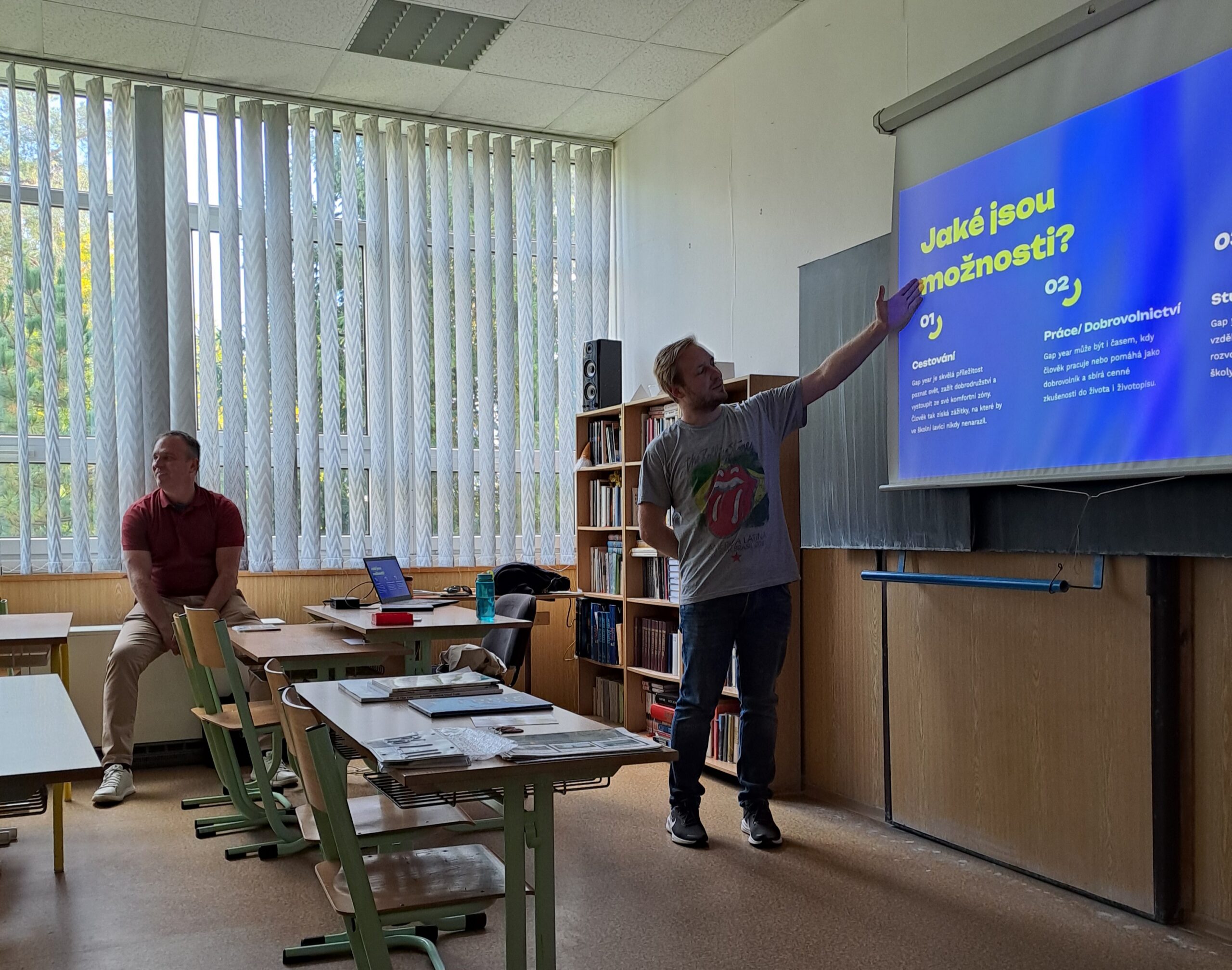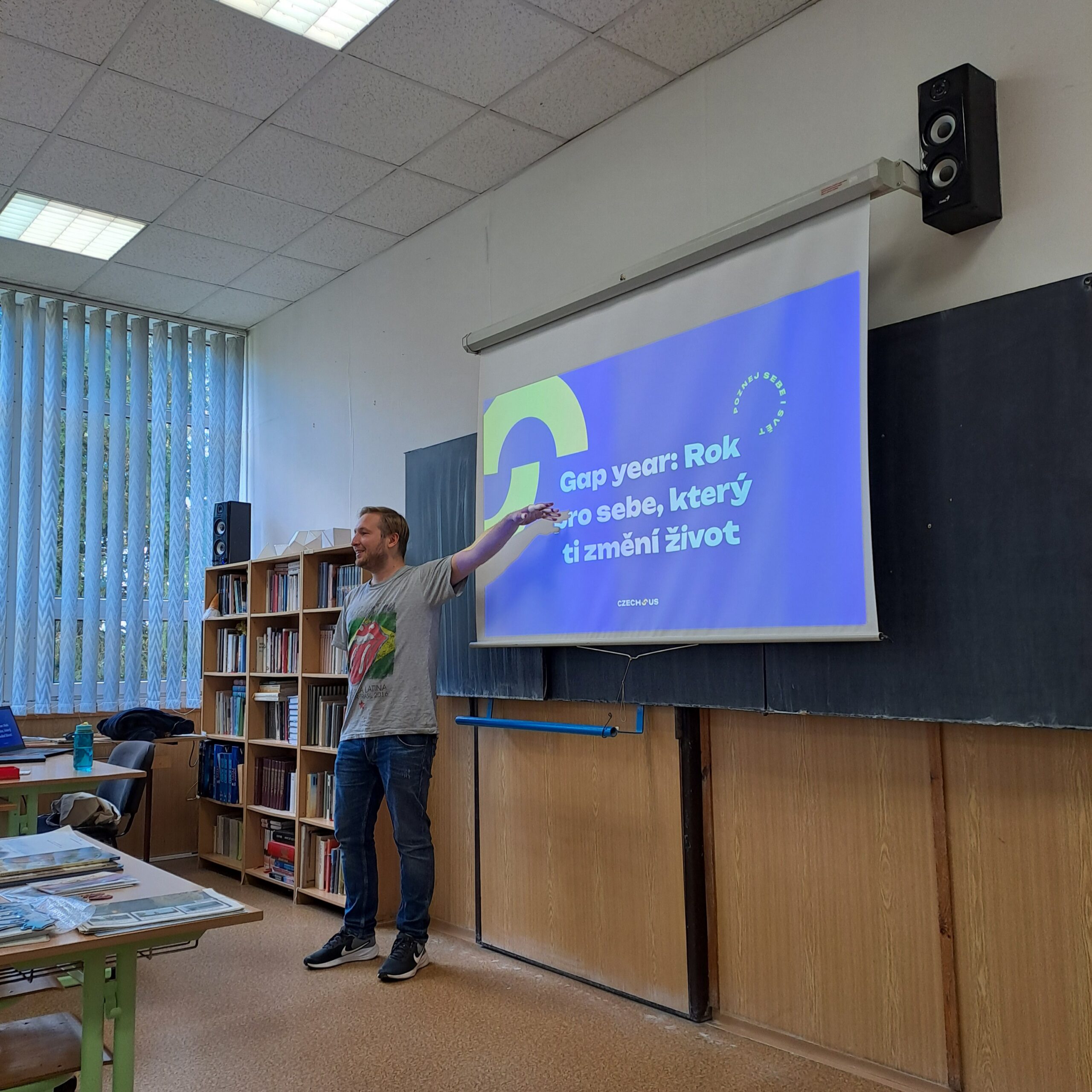V pondělí 13.10. se pro třídy septimu a oktávu konala přednáška s názvem Rok pro sebe, který ti změní život (Gap Year). O svých zkušenostech hovořil pan Ján Mikula, který s agenturou CZECH US vycestoval do Kanady. Během přednášky se naši studenti dozvěděli, že po střední škole je možné dát si rok pauzu a cestovat, pracovat v zahraničí, nebo se věnovat dobrovolnické činnosti. Komunikace probíhala v angličtině. Důležitým bodem programu bylo vystoupení žákyně septimy Carly Neumannové, která během léta vycestovala s přednášející agenturou na jazykový pobyt na Maltě. Vyprávěla své zážitky a popisovala, jak celá organizace prostřednictvím agentury probíhala.
