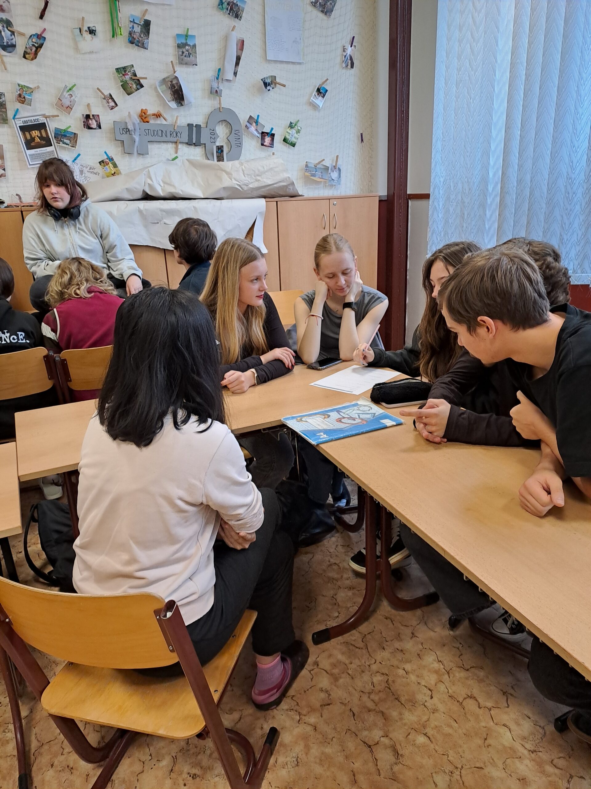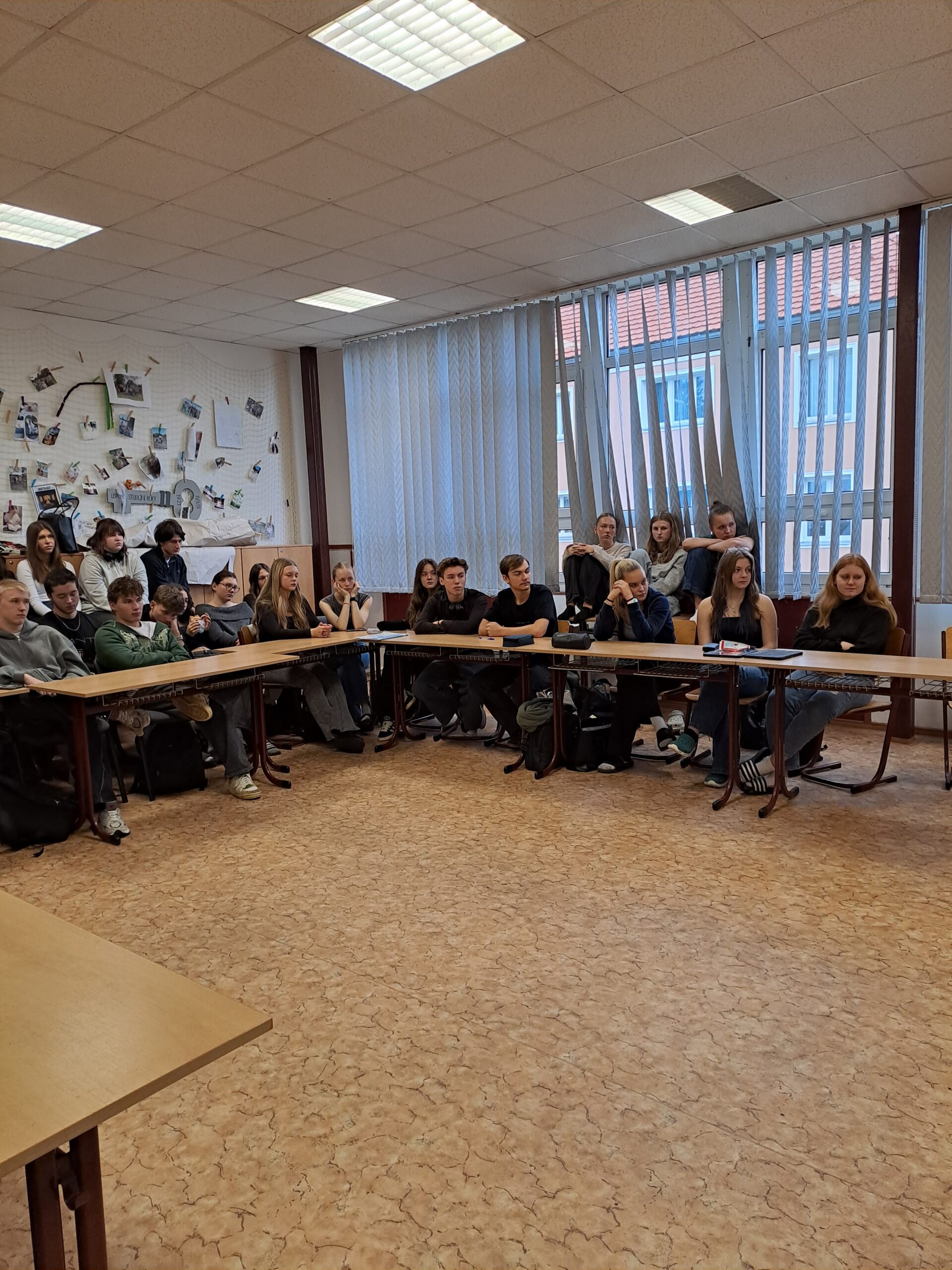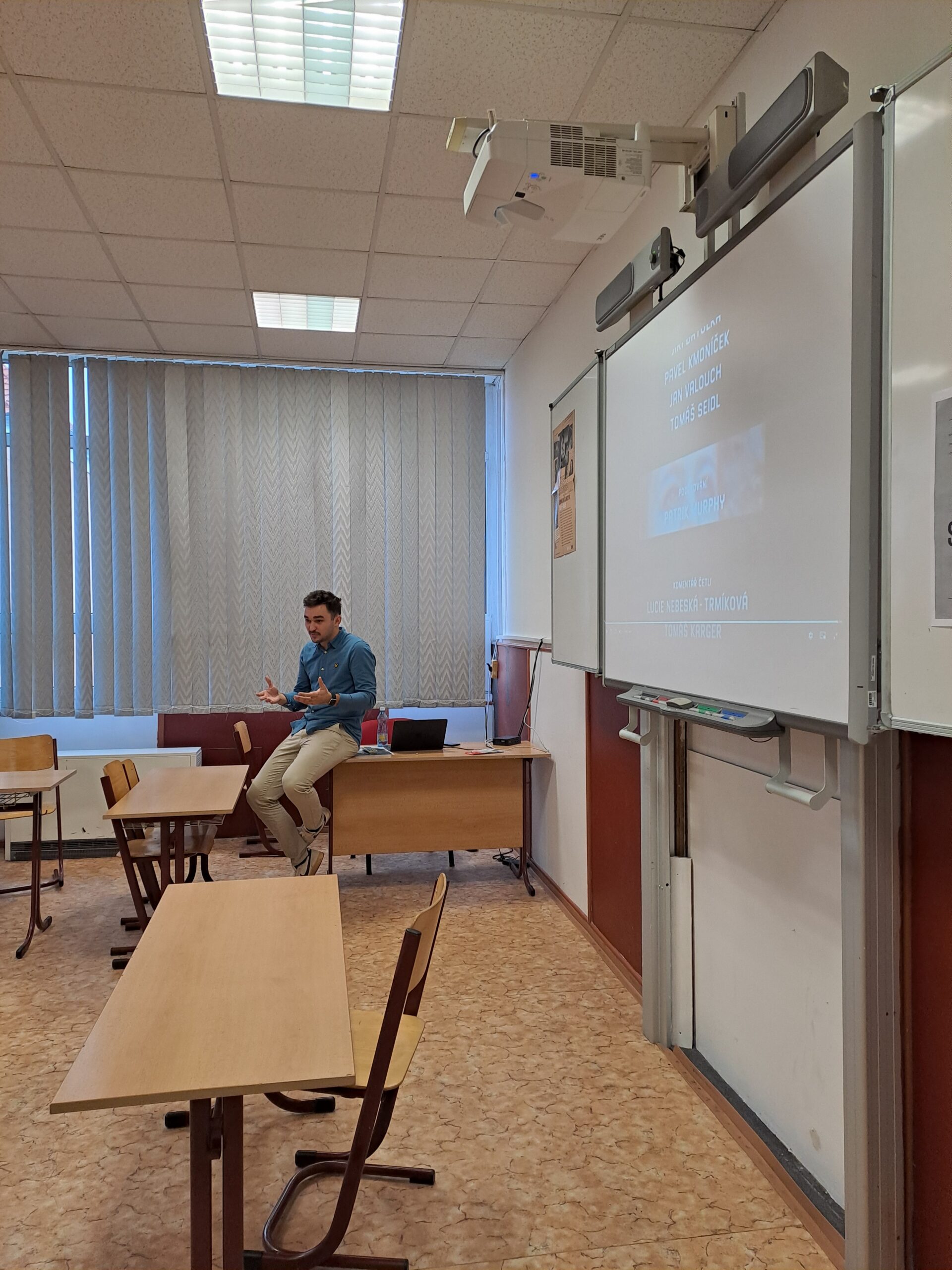 Velký dík patří paní Ráčkové za její poutavé vyprávění, panu učiteli Machálkovi za zorganizování celé akce – a rovněž přítomným septimánům a oktavánům, kteří po celou dobu nejen soustředěně vnímali, ale také diskutovali mezi sebou a dokázali našemu hostu položit několik otázek.