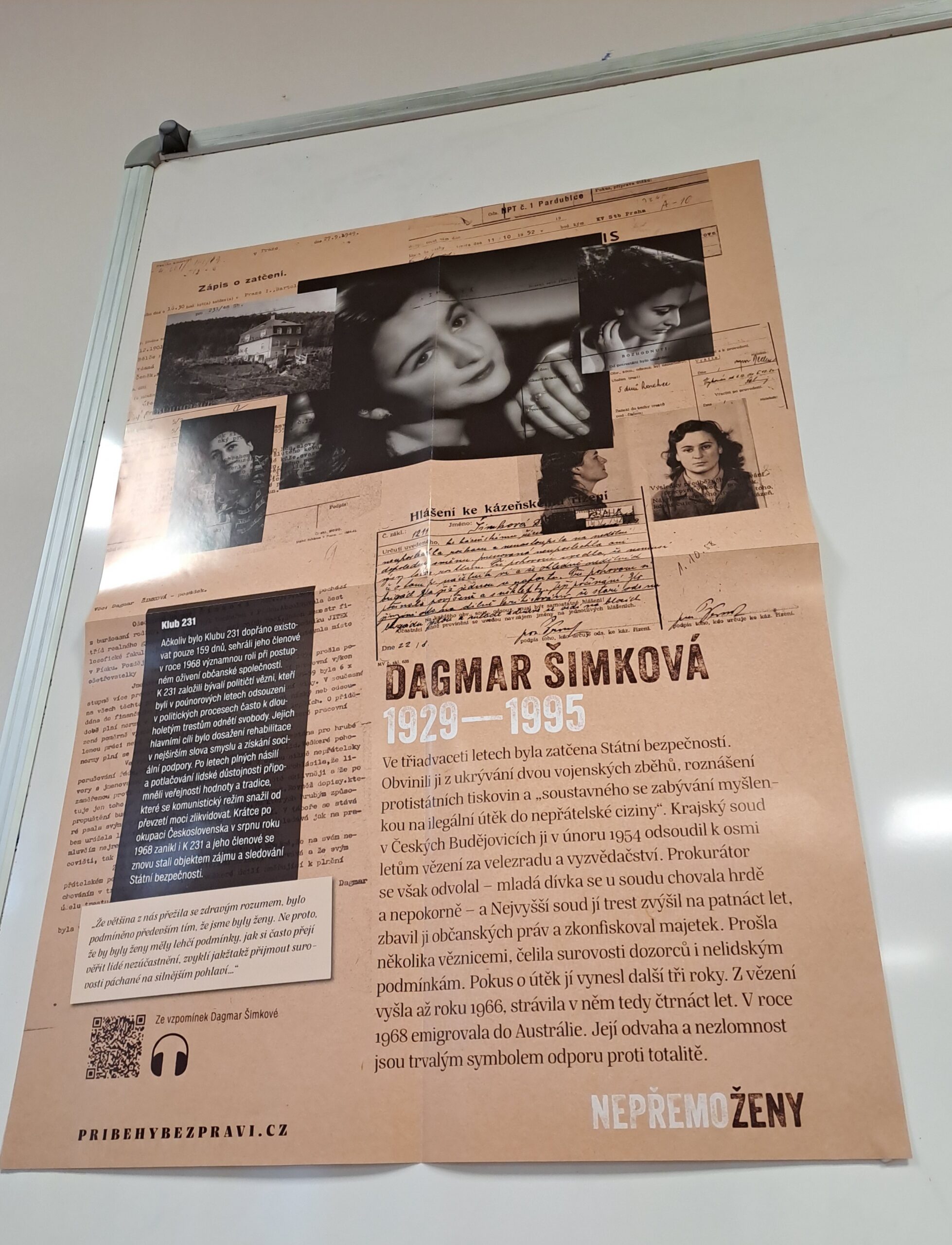 Program začal společným zhlédnutím dokumentárního filmu “Ta krásná holka z vily nad řekou”, který studentům přiblížil konkrétní příběh jedné statečné ženy i obecné souvislosti života v totalitním režimu. Tou statečnou ženou byla Dagmar Šimková, která byla pro své postoje mnoho let vězněna; film ukázal zcela otevřeně, jak bylo v té době nakládáno s politickými vězeňkyněmi. Následovala reflexe ve skupinách, během níž studenti na příkladu jednoho konkrétního života diskutovali o obecných tématech svobody, odvahy, víry a naděje.