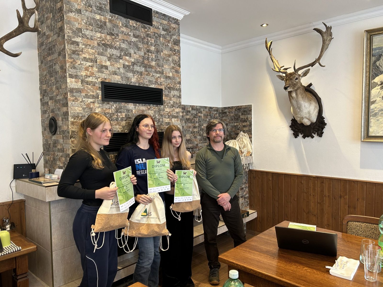 Po pečlivém vyhodnocení výsledků se v kategorii středních škol na 1. místě umístilo družstvo ve složení A. Šťastná, A. Dušková a A. Novák, které postupuje do regionálního kola v Trutnově. Družstvo S. Kolomazníkové, K. Miklóšové a V. Pánkové obsadilo krásné 2. místo. V kategorii mladších žáků nás reprezentovalo družstvo ve složení Julie K., Kristýna B. a Anna P., které skončilo těsně na druhém místě.