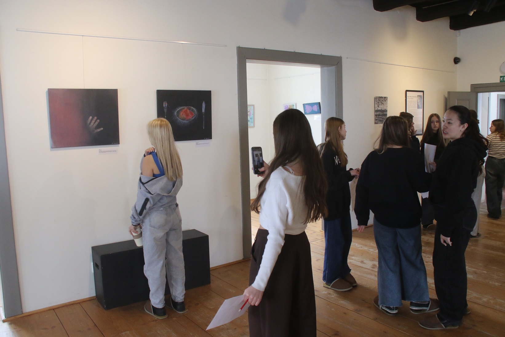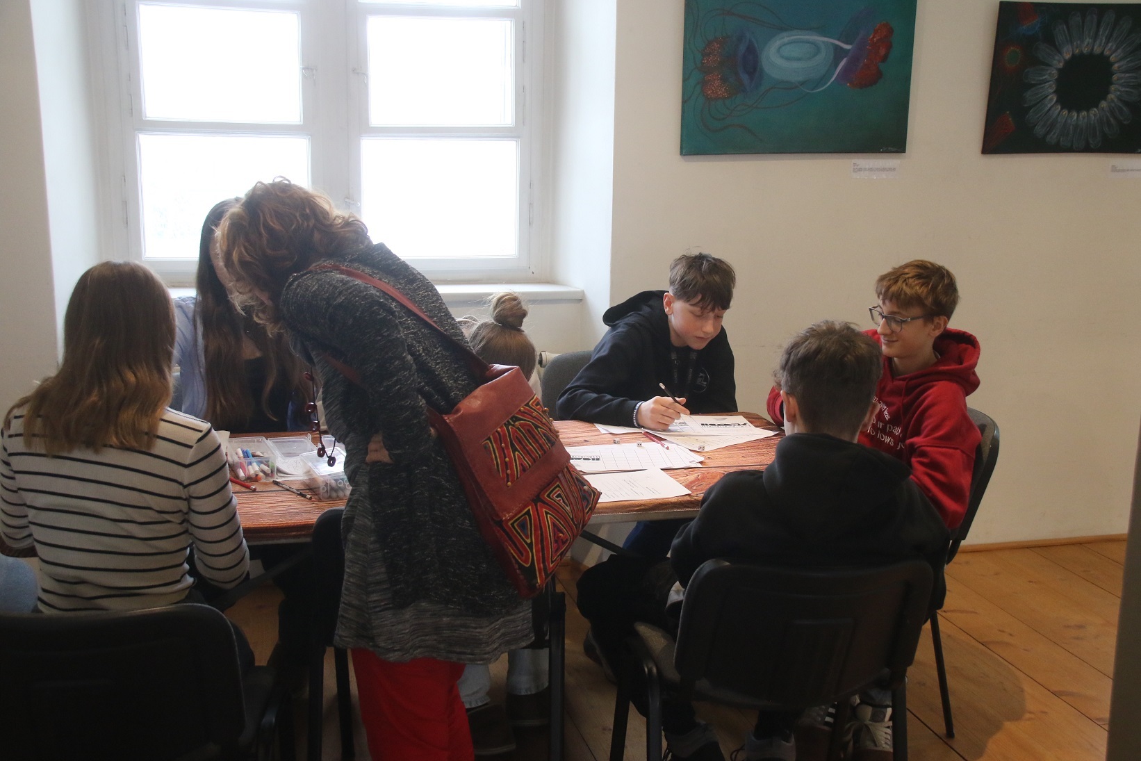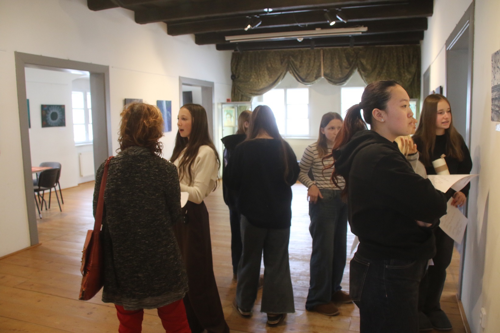 Ve středu 18. a 25. navštívila třída tercie v rámci dvou výtvarných hodin s paní učitelkou Vastlovou místní muzeum, kde právě probíhala výstava Kamily Křížové. Tato umělkyně z Tachova se specializuje na ruční malbu; ve své tvorbě se věnuje krajinomalbě, portrétům i abstraktnímu umění. Součástí její práce je také tvorba na zakázku, díky níž přináší krásu do domovů svých zákazníků.