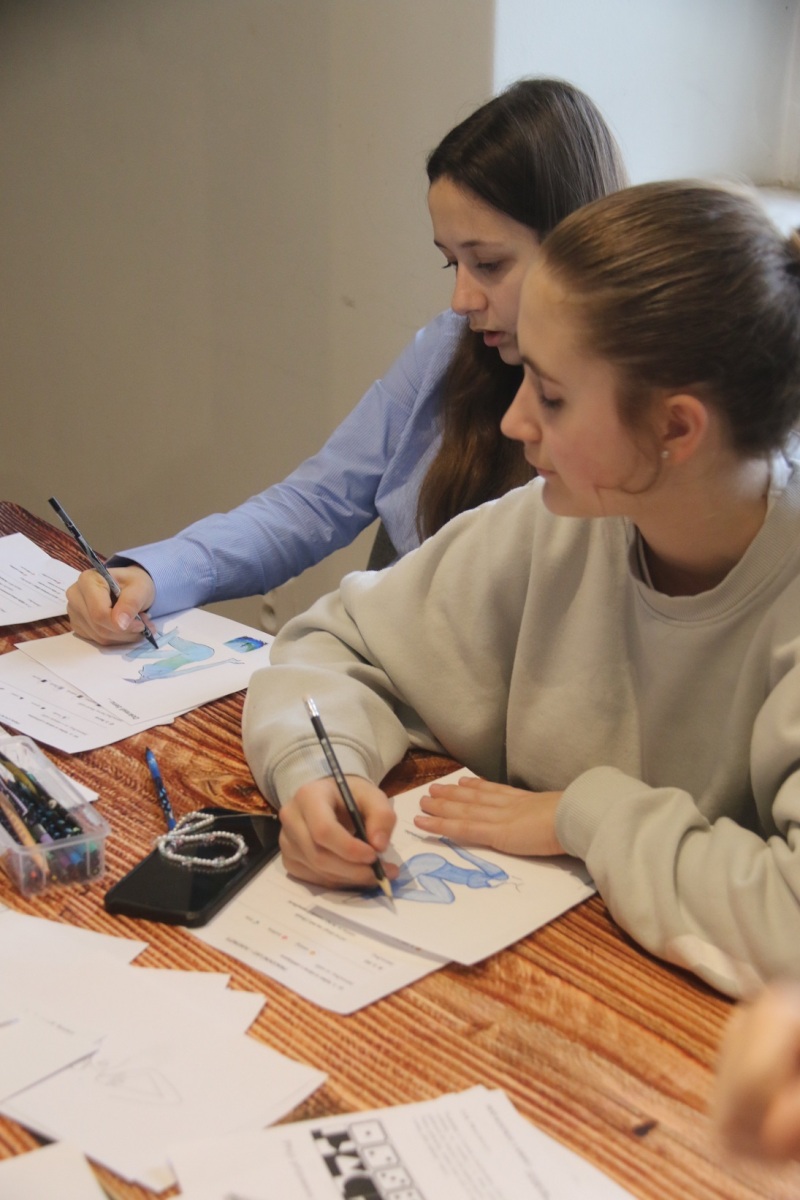 Během návštěvy jsme nejen obdivovali vystavené obrazy, ale také jsme pracovali s doprovodným materiálem, který nás výstavou provázel. Vybarvovali jsme, kreslili a nechávali barvy, aby za nás vyjádřily to, co slova někdy nedokážou.