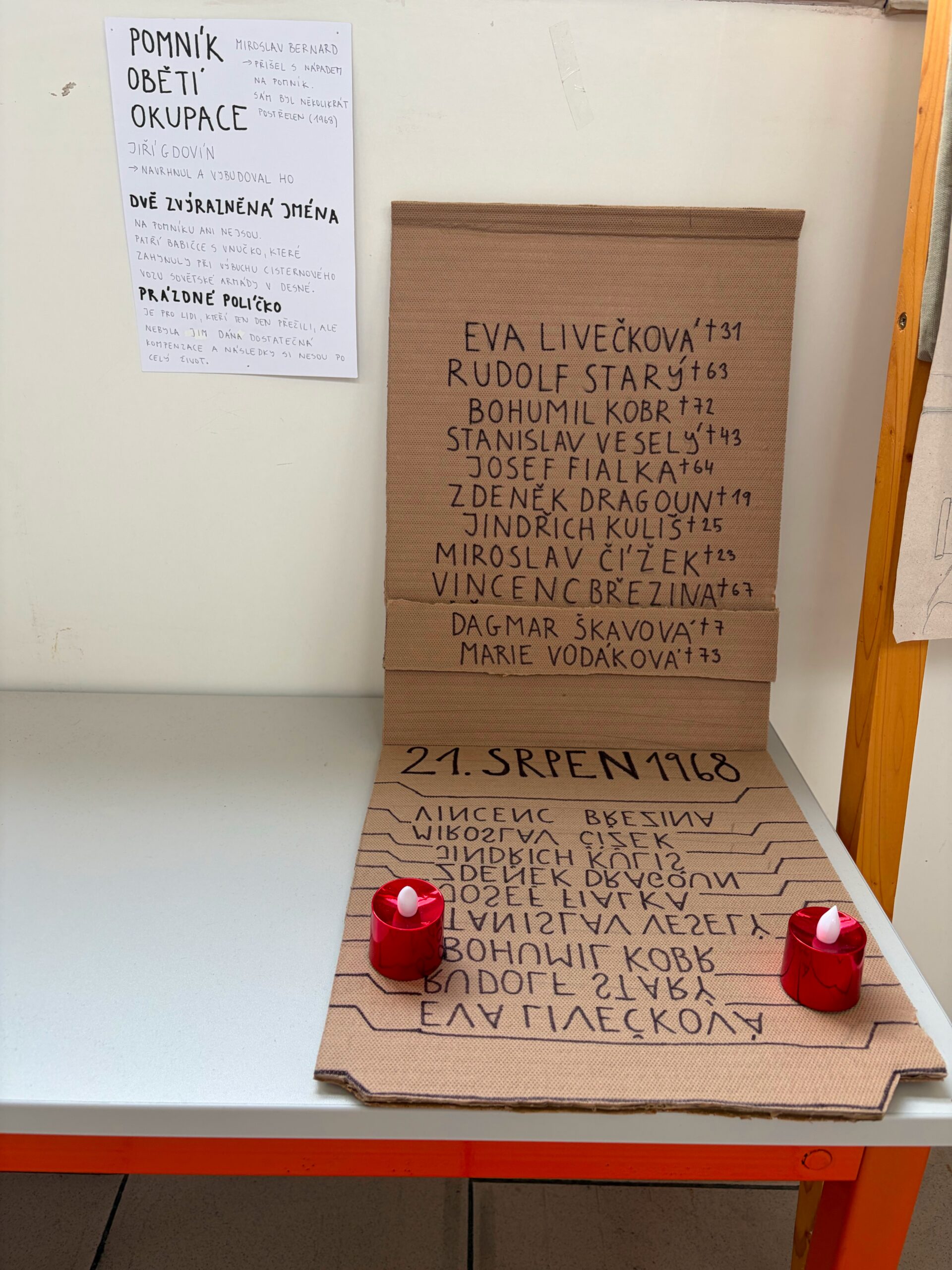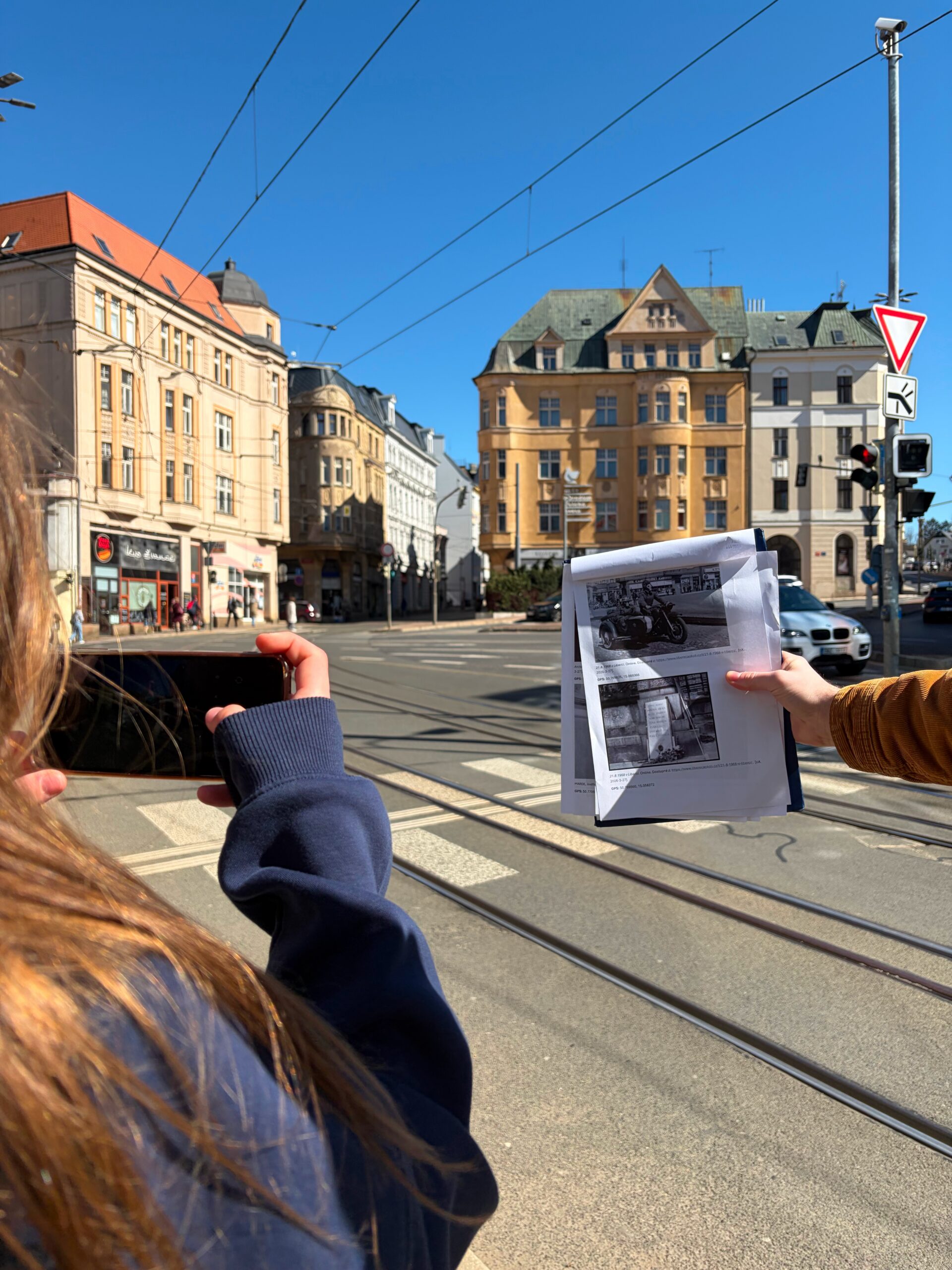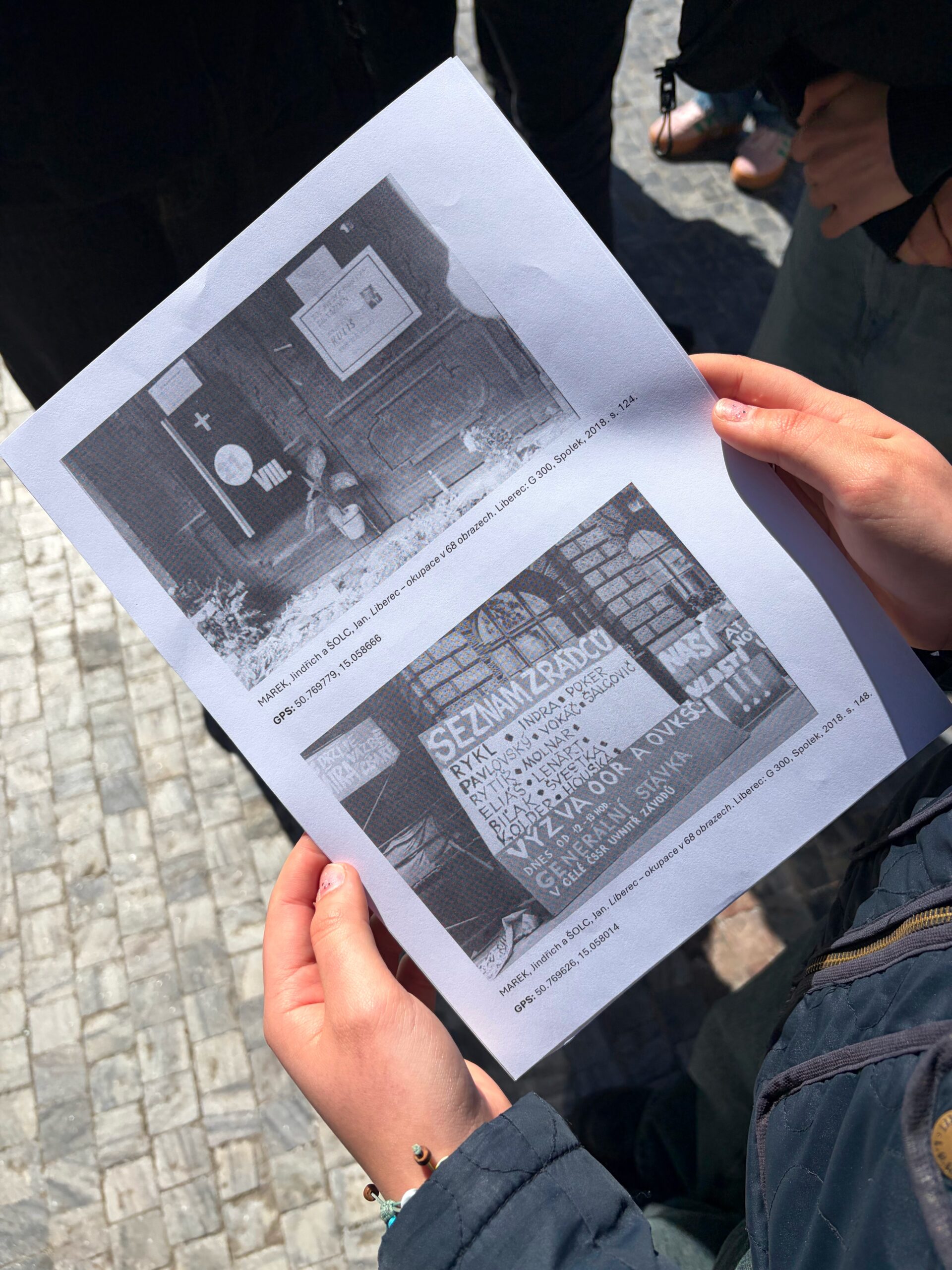 Během prvních dvou dnů žáci čerpali informace z odborné literatury a primárních pramenů. Součástí programu byla také beseda s pamětníkem panem Stanislavem Vohlídalem, přímým svědkem příjezdu okupačních vojsk do Liberce. Ve čtvrtek se třída vypravila přímo do Liberce, kde uctila památku obětí u pomníku na náměstí Dr. E. Beneše. Následně se jednotlivé týmy věnovaly mapování míst spojených s okupací a jejich srovnání se současným stavem. Součástí terénní práce byla také prohlídka směřující k libereckým kasárnám, během níž si žáci připomněli význam kamenů zmizelých (stolpersteine).